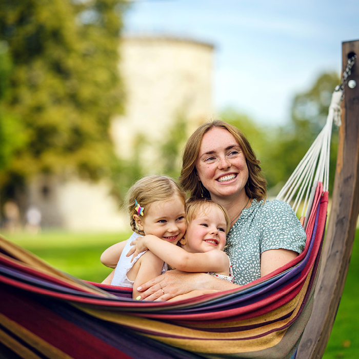 Unsere Rasenflächen dürfen Sie nicht nur betreten, sondern auch für Picknick, Yoga oder zum Rumliegen nutzen. Auf dem Gelände verteilt finden Sie viele Hängematten, die nicht nur Erwachsene gern für ein Päuschen mit Buch nutzen. Auch ein Mittagsschläfchen unter einem schattigen Baum ist hier etwas ganz Besonderes.