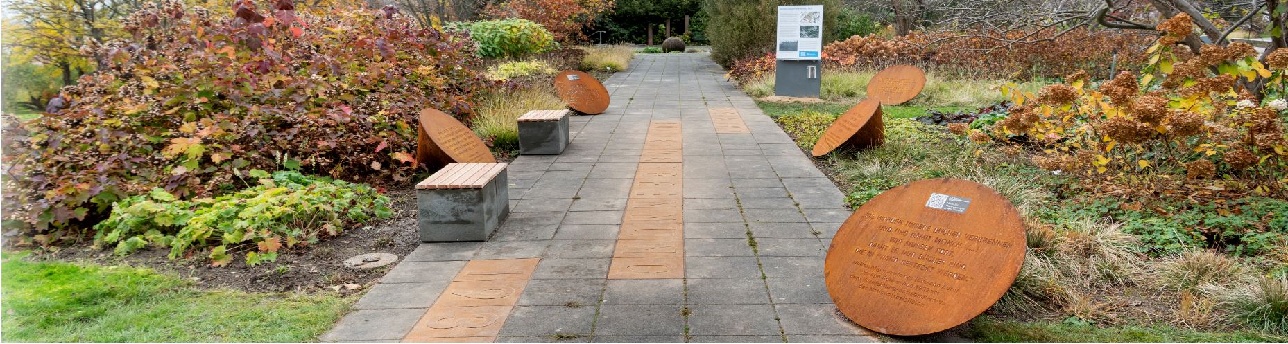Mit dem Denkort Bücherverbrennung 1933 wird der historische Ort zu einem Ort der Begegnung und Bildung. Die 28 im Boden eingelassenen „Drucklettern“ stehen für das gedruckte und die fünf Kegel als „Lautsprecher“ für das gesprochene Wort. Die Inhalte dieser Website sind Teil des stationären Denkmals im egapark. Zivilgesellschaftliches Engagement machte den Denkort möglich. Mit den Kleinen Lesungen großer Literatur wird er zu einem sprechenden Denkmal. Erinnerung braucht Wissen, dazu dienen die Informationen zu den Bücherverbrennungen 1933 und zur Bücherverbrennung in Erfurt am 29. Juni 1933.
