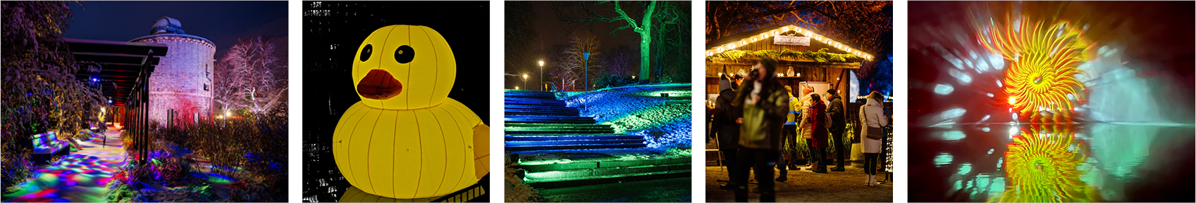 In den dunklen Wintertagen erstrahlt der egapark in leuchtenden Farben. Zauberhafte Lichtskulpturen und stimmungsvolle Leuchtelemente warten darauf, auf einem 3 km langen Rundgang entdeckt zu werden.